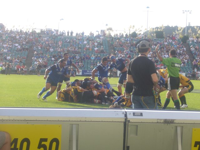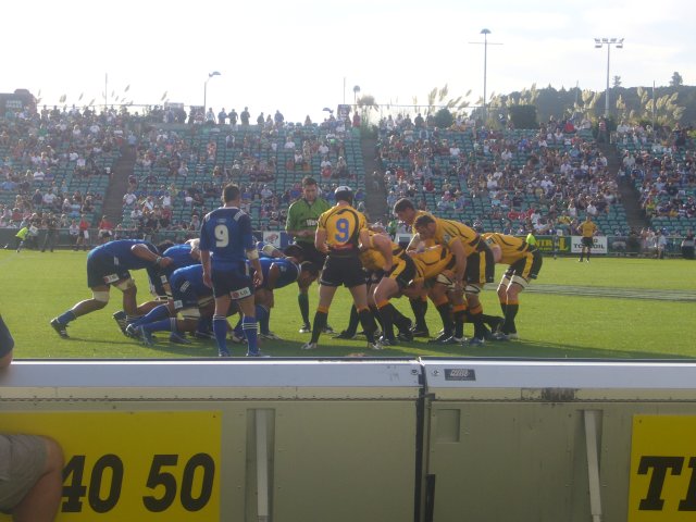 Naja… Jedenfalls hatten wir einen fantastischen Einstieg hier in Neuseeland. Als erstes habe ich Christian ein bisschen die Stadt gezeigt. Es ist ungefähr so wie in Köln: Hässliche Innenstadt, prima Flair. Nur dass Auckland nicht so häßlich ist wie Köln und das Meer dann doch schon was netter ist als der Rhein. Am zweiten Tag trafen wir uns mit Allan, haben uns den North Head sowie das Rugbyspiel West-Australien gegen Auckland angeschaut und sind Abends über Takapuna wieder nach Auckland zurückgekommen. Eine interessante Eigenschaft von Rugby: Je härter das Spiel, desto entspannter die Fans. Außer ein paar harmlosen Sprüchen war die Atmosphäre sehr entspannt und die Fans der verschiedenen Teams sitzen im gleichen Block.
